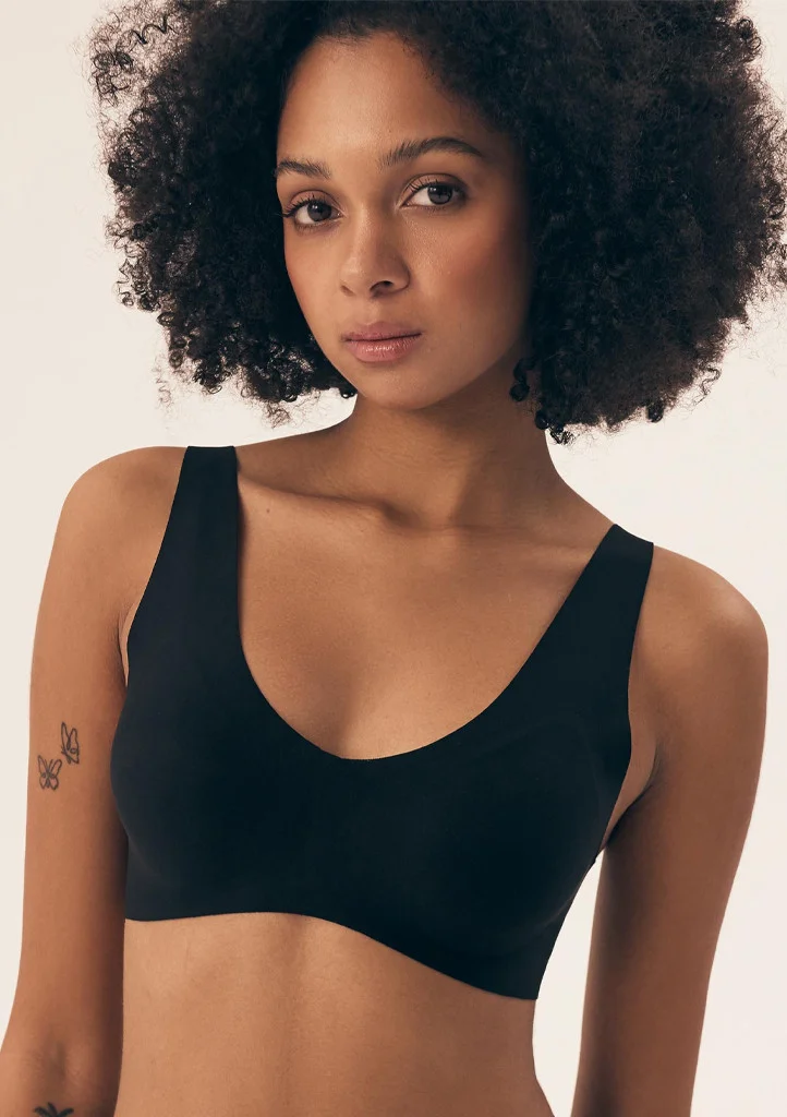 Černá podprsenka Henderson kombinuje pohodlí a praktický design. Tento model je bez kostic a má vyjímatelné vycpávky, které se dají snadno přizpůsobit. Zapínání na zádech je na tři háčky a tři pozice, což zajišťuje perfektní přizpůsobení vaší postavě. Měkký, elastický materiál se krásně přizpůsobí a nabízí komfort po celý den. Skvělá volba pro každodenní nošení! Materiálové složení: 65% polyamid, 35% elastan.