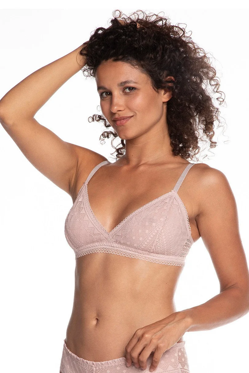 Dámská podprsenka, která je vyrobená z velmi kvalitní a prodyšné tkaniny. Košíčky modelu jsou vyrobené z jemné krajky a nemají kostice. Délku ramínek je možné nastavit. Složení: 85 % polyamid, 15 % elastan.