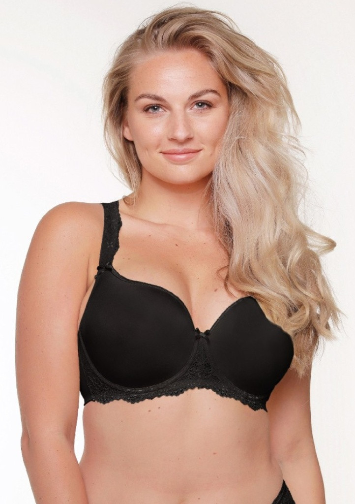 Dámská hladká podprsenka značky LingaDore v elegantní černé barvě. Velikostní rozšíření oblíbené podprsenky 1400-1 pro objemnější poprsí. Podprsenka má hladké košičky. Košíčky podprsenky mají jemnou výztuž. Ve středu dekoltu je aplikována jemná krajka v kombinaci se saténovou mašličkou. Ramínka podprsenky jsou zdobena krajkou. Obvod podprsenky je hladký. Nastavitelná ramínka jsou neodepínatelná. Zapínání podprsenky je na dva háčky na tři pozice. Materiálové složení: 80% polyamid, 20% elastan.