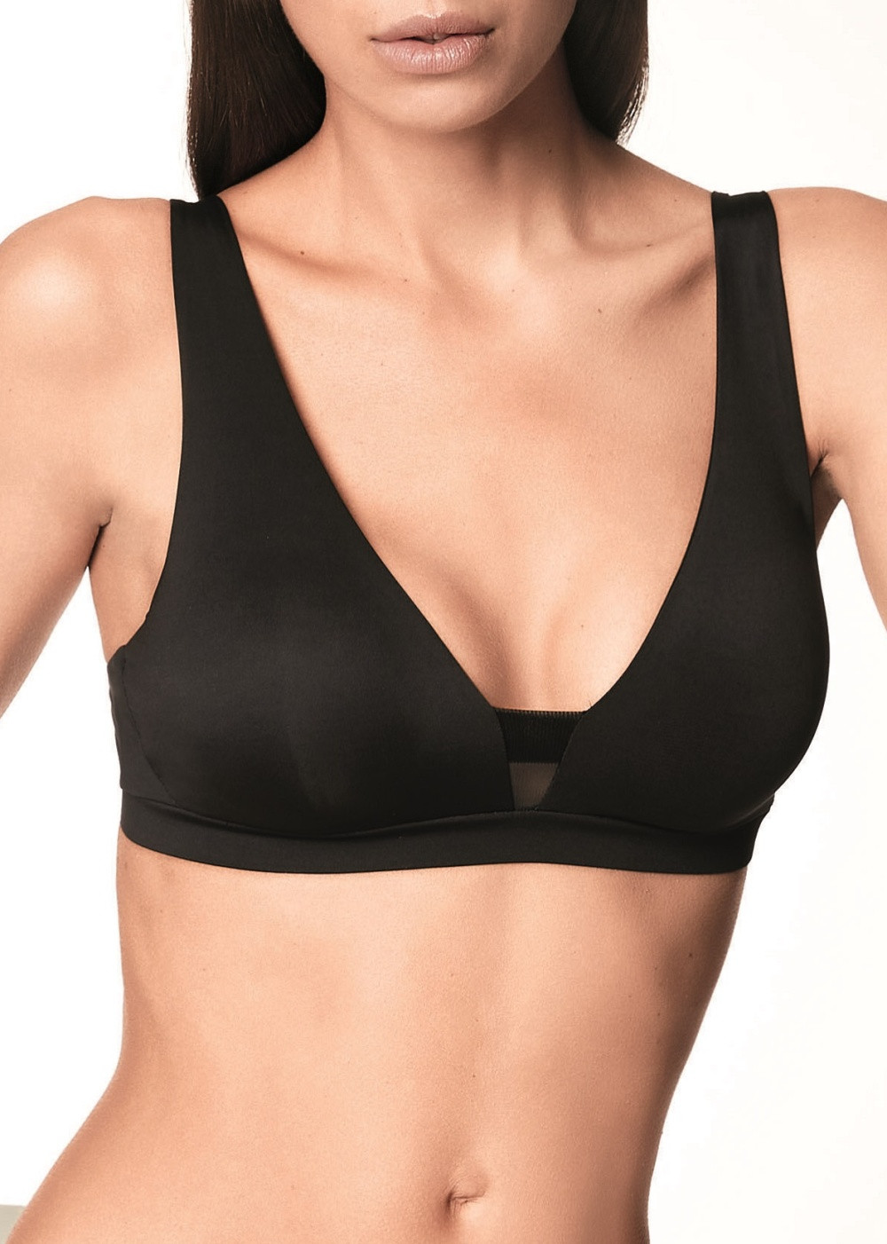 Elegantní hladká podprsenka Lormar z nové kolekce Extra. Jemná podprsenka má trojúhelníkový střih, je jemně vyztužená, mezi košíčky má transparentní proužek. Zapíná se na dva háčky a má čtyři pozice. Ramínka jsou pevně všitá, délkově stavitelná. Podprsenka je vyztužená. Materiálové složení: 74% polyamid, 26% elastan