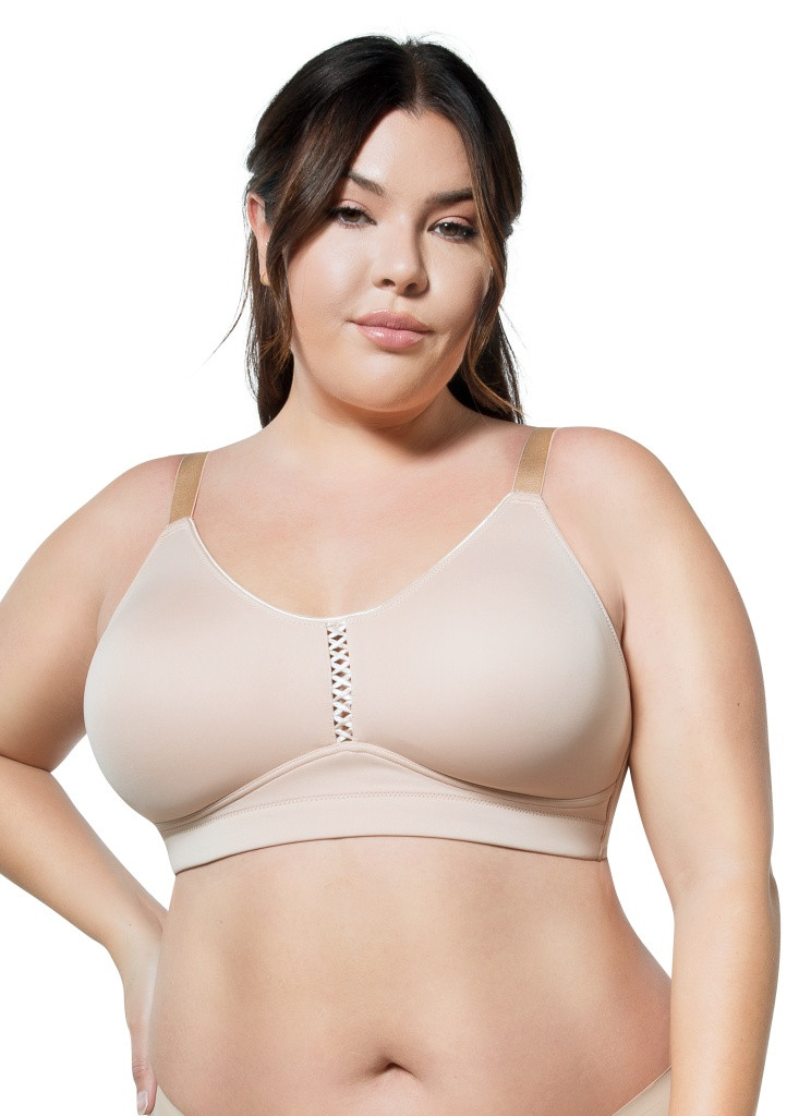 Dámská podprsenka americké značky Parfait. Nová podprsenka z kolekce ERIKA je maximálně pohodlná i pro ty, které mají větší poprsí. Podprsenka je bezkosticová, mírně vystužená. Má širší postranní výstuž, takže podprsenka Vám perfektně sedne. Spodní část podprsenky drží našitá širší guma, která dobře přilne k obvodu. Zapínání má na tři pozice ve čtyřech řadách. Ramínka jsou pevně přišitá a dá se regulovat jejich délka. Dámská podprsenka má kolem horní části lesklé lemování. Uprostřed podprsenky je zdobné šněrování, které je přišité napevno. Materiálové složení: 91% polyester, 9% elastan