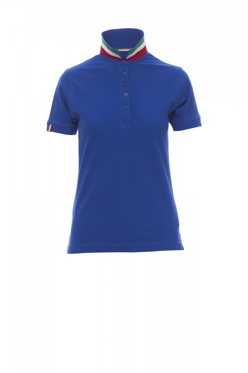 - Dámská vyštíhlená polokošile s krátkými rukávy s 5 barevně sladěnými perleťovými knoflíky, barevně sladěný límeček s kontrastním rubem (barvy vlajky), barevně lemovaný pravý rukáv (stejná barva jako