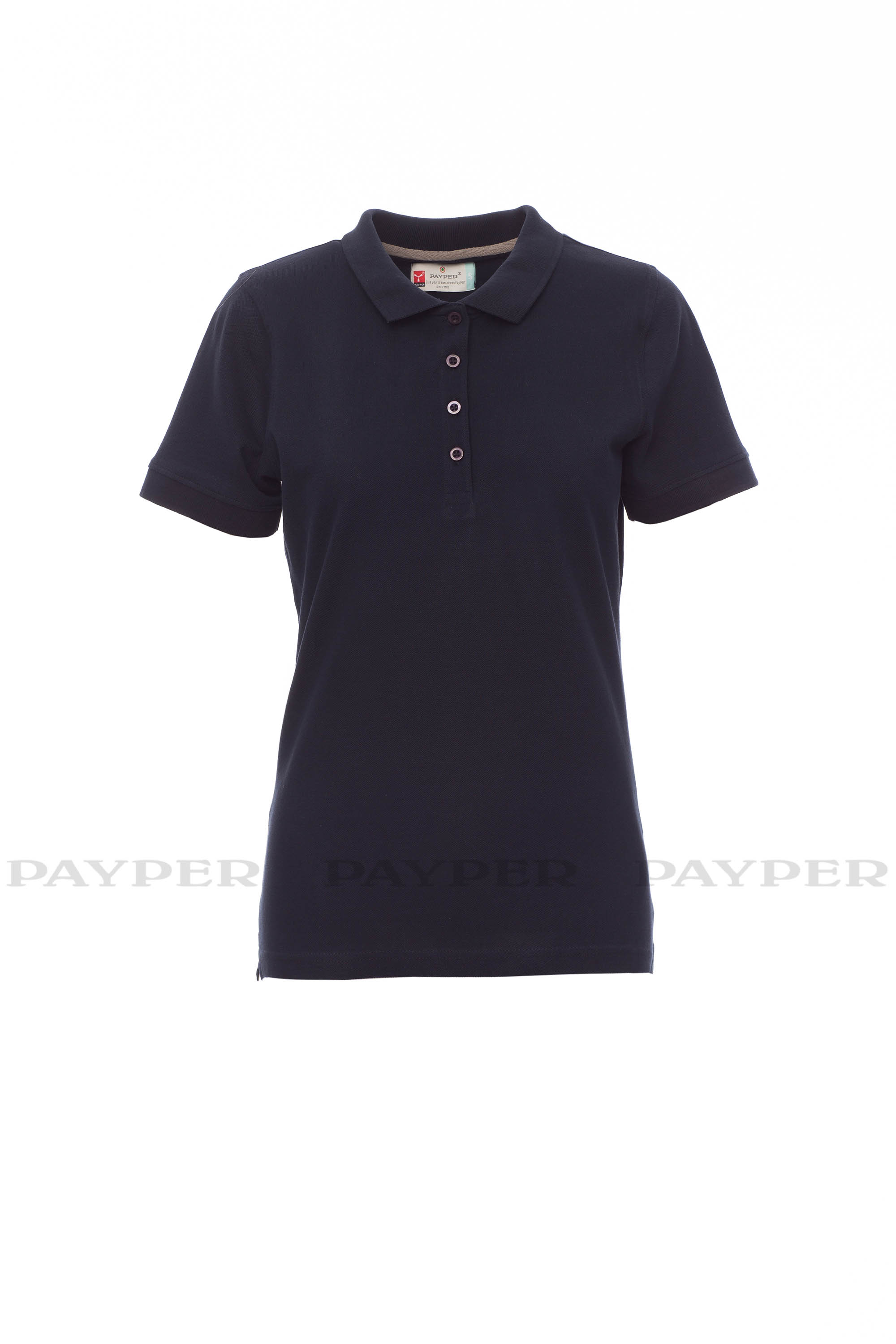 Dámská polokošile s krátkým rukávem, 4 knoflíky, knoflíky s efektem perleti, lemování žeber a lemů rukávů, boční průduchy, prošívání skrytého límce kontrastní páskou, strečové švy, boční výztužná páska, páska na vnitřní výstřih