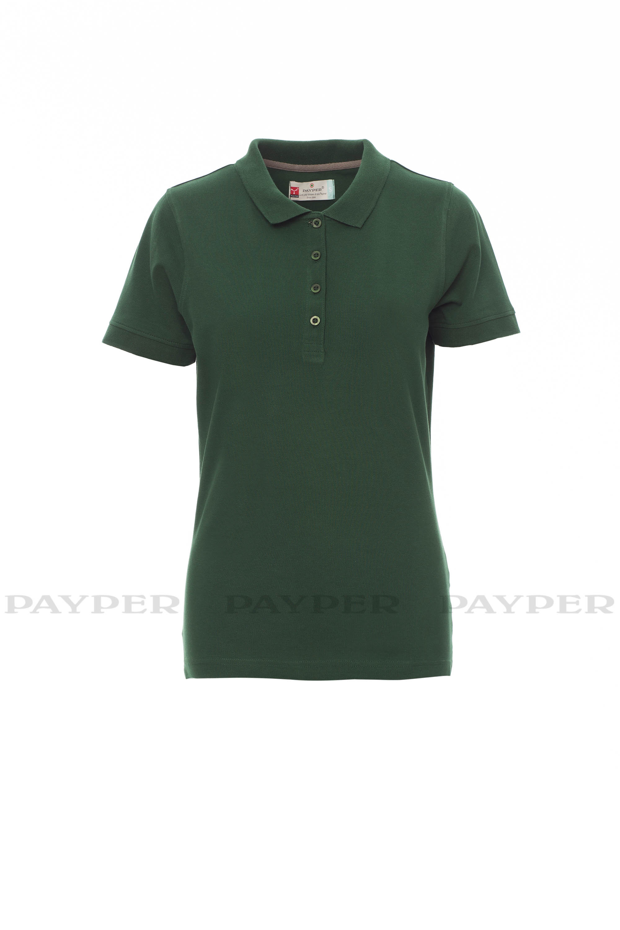 Dámská polokošile s krátkým rukávem, 4 knoflíky, knoflíky s efektem perleti, lemování žeber a lemů rukávů, boční průduchy, prošívání skrytého límce kontrastní páskou, strečové švy, boční výztužná páska, páska na vnitřní výstřih