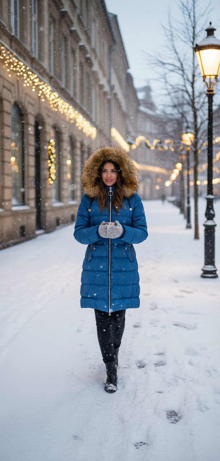 Dámská prošívaná zimní dlouhá bunda s odepínací kapucí. Kapuce má odepínací kožešinový límec. Boční kapsy na zip. Vevnitř u podšívky taky jedna všitá kapsa. Materiálové složení: 100% Polyester