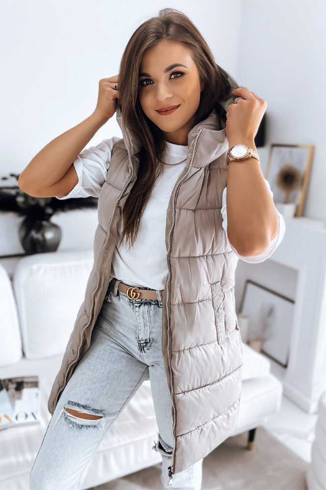 Prošívaná vesta BRITA Prošívaná vesta trochu delšího střihu skvěle doplní podzimní styling, sportovní i ležérní. Má dvě kapsy, velkou, efektně vypadající kapuci a syntetickou výplň, která vás zahřeje v chladných podzimních a zimních dnech. Dostupné ve dvou barvách. Béžová barva Složení: 100% polyester. Rozměry modelu: Boky: 85 cm Pas: 68 cm Prsa: 87 cm Výška: 172 cm Velikost boty: 39 Model má na sobě velikost S.