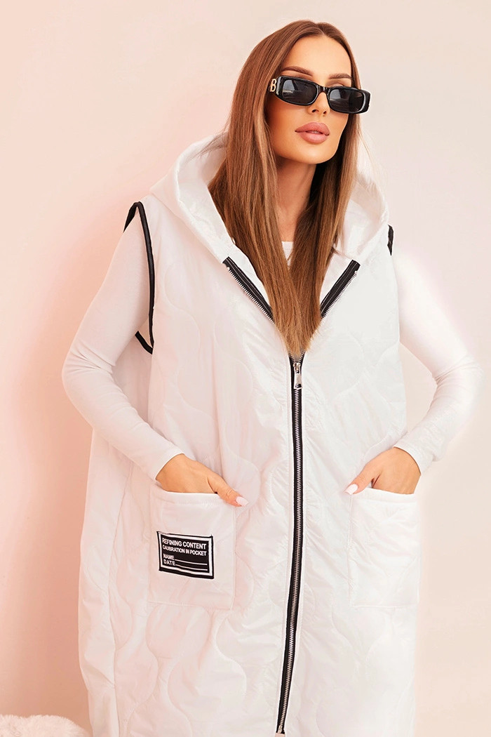 Dámská prošívaná vesta Plus Size s kapucí na zip bílá UNI