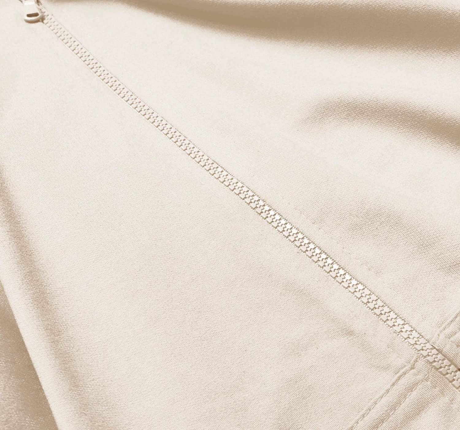 Tenká krátká dámská tepláková mikina cappuccino barvě model 18378928 J.STYLE Barva: odstíny béžové, Velikost: