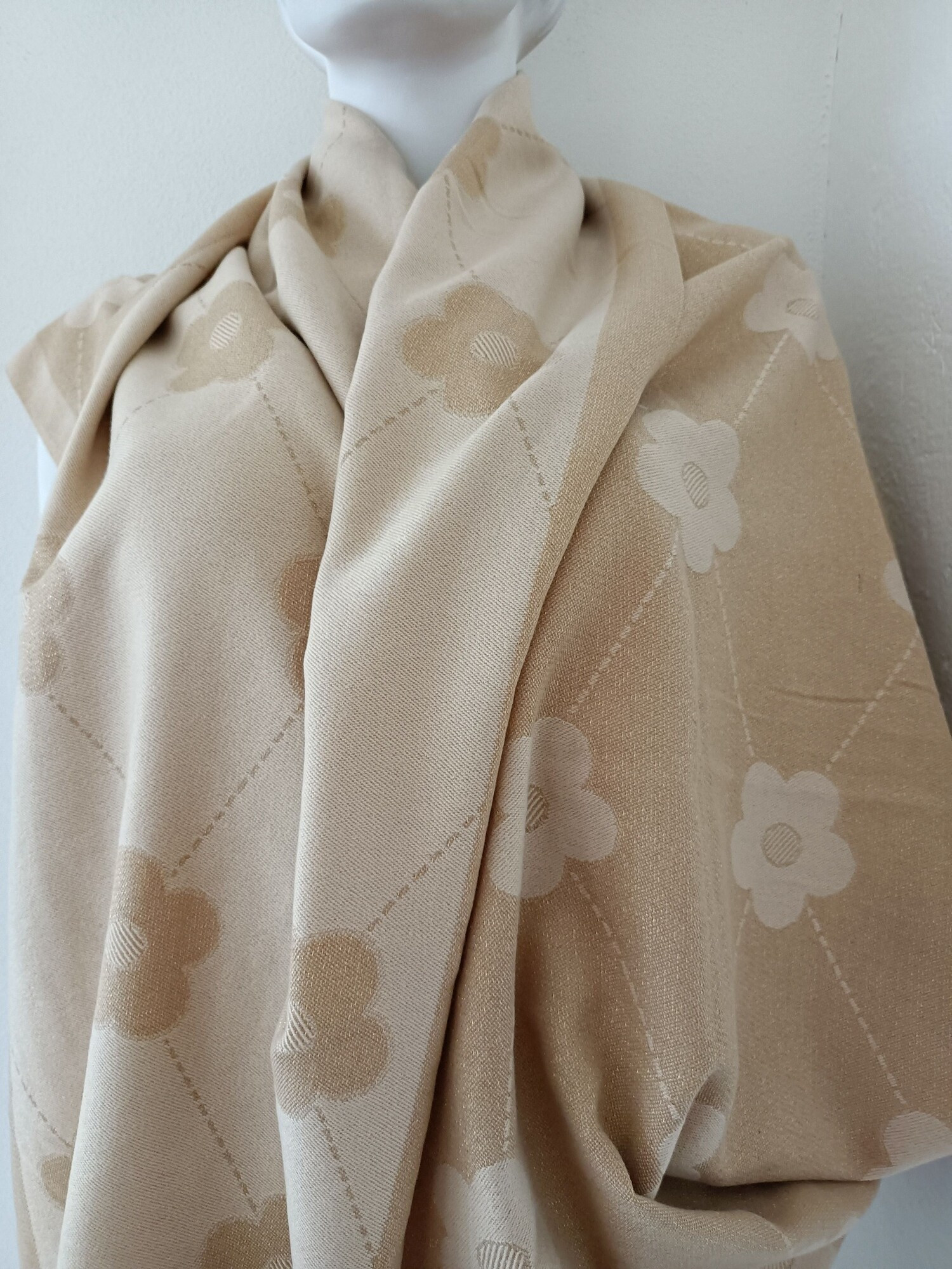 Dámská zlato-hnědá šála značky Moraj, na krajích střapce. Rozměr 180cm x 60cm Materiálové složení: 100% Polyester