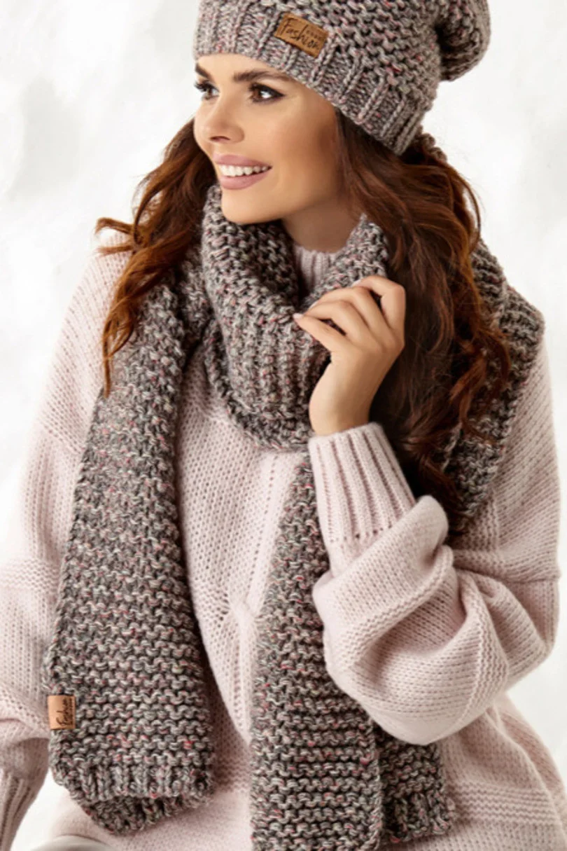 Ažurová dámská šála, která je vyrobená efektní hrubší příze. Složení: 85 % akryl, 15 % polyamid.