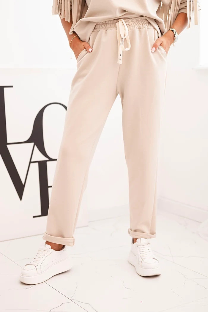 Elegantní dámský komplet v máslové barvě je kombinací pohodlí a módního designu. Mikina volného střihu je ozdobena efektními třásněmi na rukávech, které jí dodávají výjimečný charakter. Vyrobena z příjemného na dotek, elastického úpletu, zajišťuje volnost pohybu a komfort nošení. Kalhoty s elastickým pasem a regulací na šňůrku zaručují dokonalé přizpůsobení, a jejich jednoduchý střih skvěle ladí s mikinou. Tento komplet se hodí jak do každodenních stylizací, tak při setkání s přáteli. Velikost je univerzální a bude vhodná pro dámy ve velikostech S, M, L a XL Vlastnosti produktu: Komplet v máslové barvě s třásněmi na rukávech Mikina volného střihu, dodávající lehkost siluetě Kalhoty s elastickým pasem a šňůrkou na regulaci Vyrobeno z měkkého, příjemného na dotek úpletu Výroba Itálie Rozměry Mikiny:Rozměry uvedené níže jsou měřeny na plocho +/- 1 cmPro získání obvodu šířku násobíme 2 Šířka pod pažemi: 65 cm (po roztažení: 70 cm) – Hrudník od cca 130 cm do 140 cm Celková délka: přední 55 cm Délka rukávu od podpaží: 43 cm Rozměry Kalhot: Šířka v pase: 36 cm (po roztažení: 50 cm) Šířka v bocích: 54 cm (po roztažení: 60 cm) Celková délka: 98 cm Délka nohavice od rozkroku: 66 cm Složení materiálu: 47% Viskóza 45% Polyester 8% Elastan