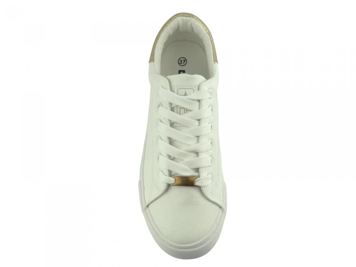 Klasické dámské tenisky z ekologické kůže. Stojí na gumové podrážce. Zaoblená špička. Klasický model se šněrováním. Měkká, materiálová stélka zajistí pohodlí při používání i během dne. Tento střih se bude skvěle hodit téměř ke každé stylizaci s kalhotami a šortkami. Nezbytná součást vašeho jarně-letního šatníku! materiál koženka Stélka plátno Výška boty 6 cm Výška podrážky 2.5 cm Velikost Délka vložky 36 23.5 cm 37 24 cm 38 24.5 cm 39 25 cm 40 25.5 cm 41 26 cm