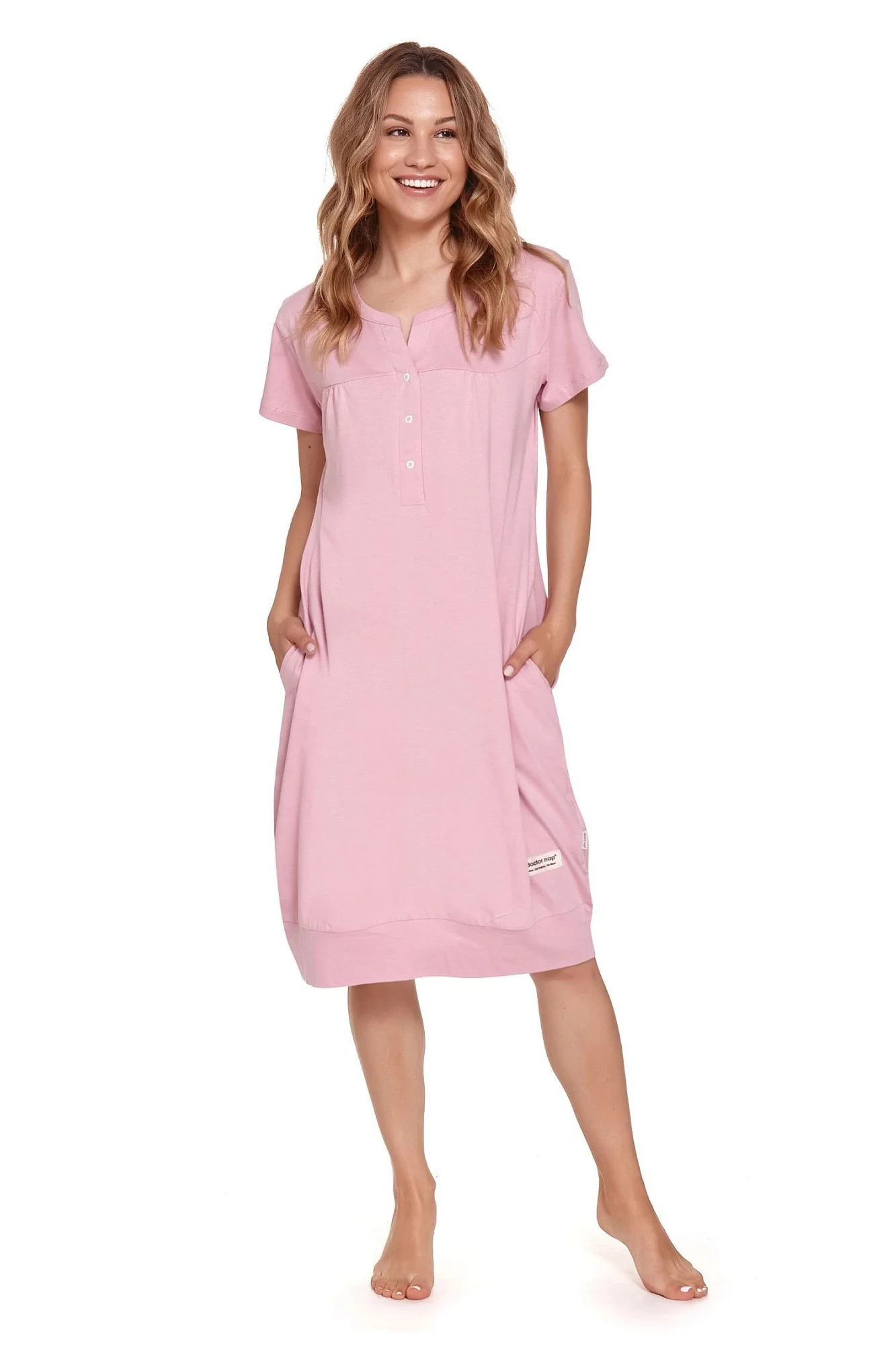 Dámská těhotenská košile 4348 violet Doctornap - světle fialová barva - z vysoce jakostní bavlny - s krátkými rukávy - zapínání na patentky - na bocích kapsy - ideální pro těhotné a kojící ženy - certifikát OEKO-TEX Standard 100Materiálové složení: 100% bavlna