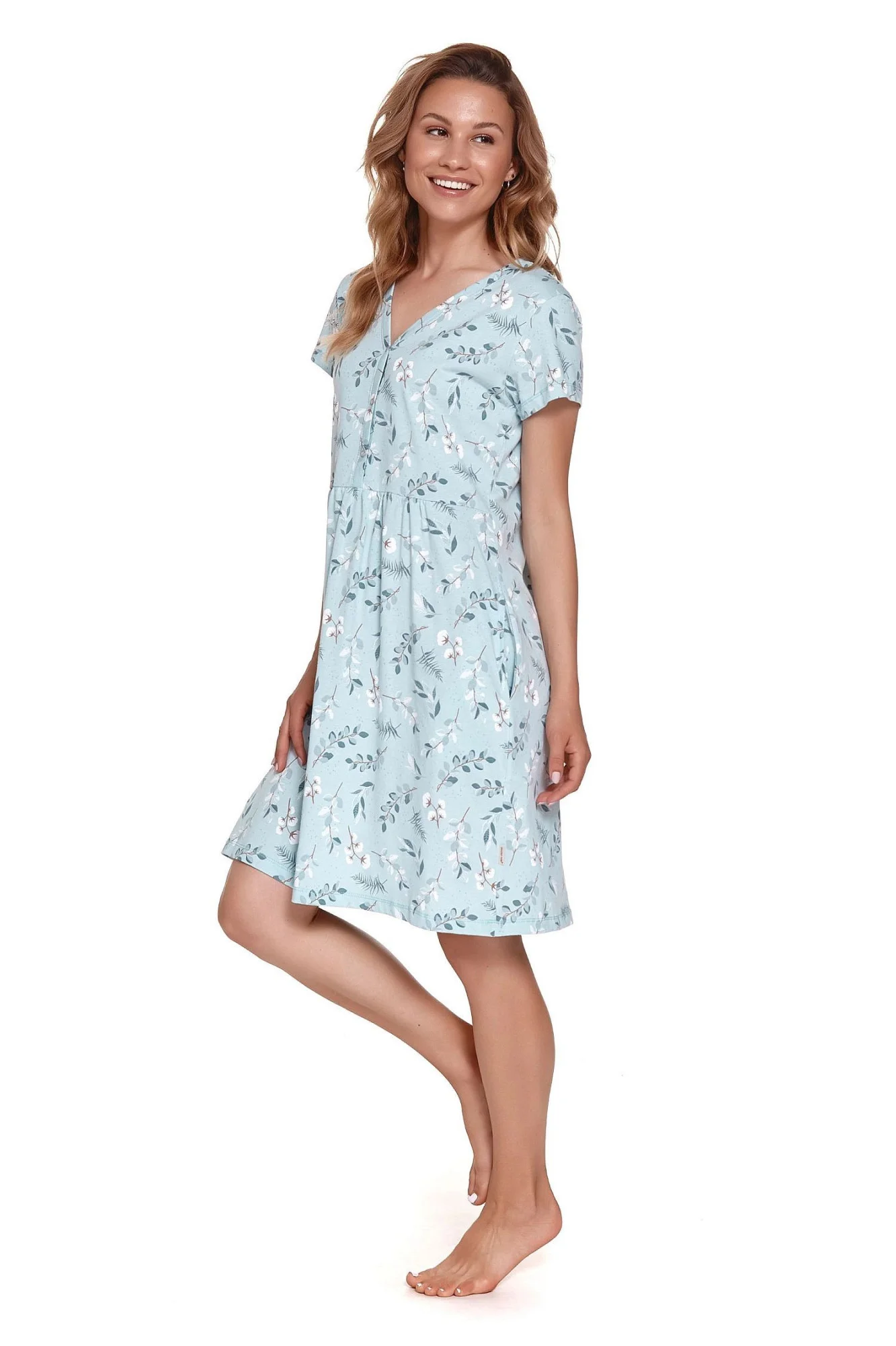Dámská těhotenská košile 9930 blue Doctornap - světle modrá barva - z vysoce jakostní bavlny - se vzorem - výstřih se zapínáním - krátké rukávy - kapsy na bocích - certifikát OEKO-TEX Standart 100 - ideální pro těhotnéMateriálové složení: 100% bavlna