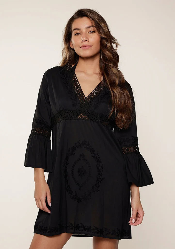 Tunika značky LingaDore je perfektní volbou pro pohodový a stylový look. Tento boho model je vyrobený ze 100% bavlny, což zajišťuje příjemný komfort po celý den. Má V-výstřih a rozšířené rukávy, které jí dodávají lehkost a vzdušnost. Detaily v prošívání podtrhují její jedinečný design. Tunika je ideální jako lehké šaty přes plavky, což ji činí skvělou volbou pro relaxaci u vody, na pláži nebo u bazénu. Díky své univerzálnosti je také perfektní pro barevný, casual look v teplých letních dnech. Materiálové složení: 100% bavlna.