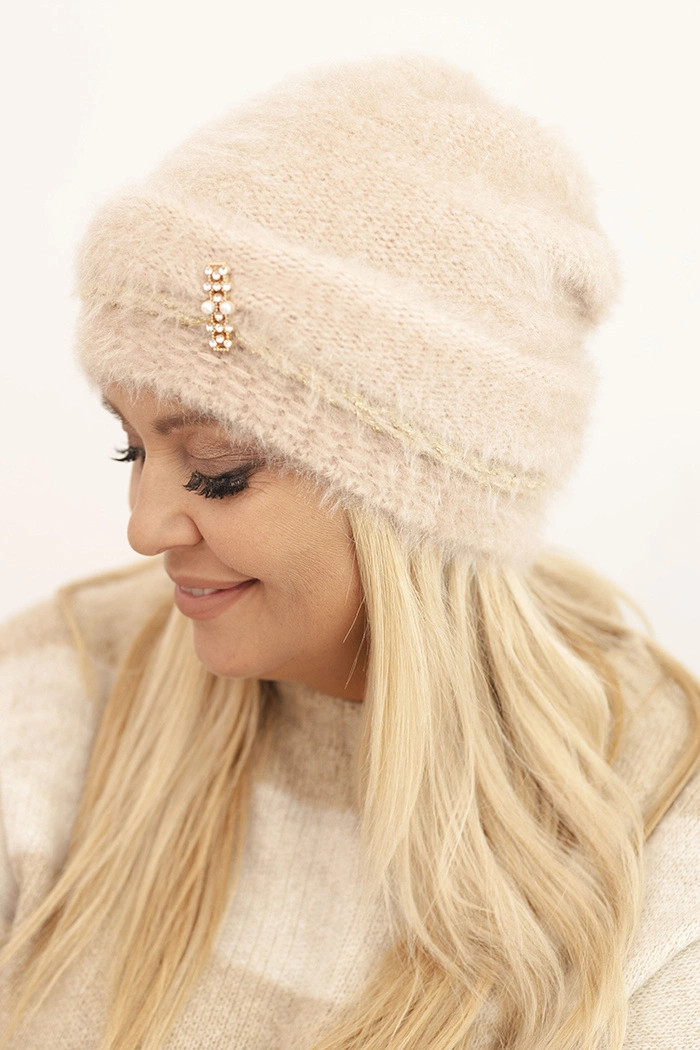 Elegantní a ženská zimní dámská čepice vyrobená z měkké, nadýchané pleteniny je ideální volbou na chladnější dny. Model se vyznačuje dekorativním, pleteným zakončením a aplikací s perličkami a lesklými kamínky, které dodávají celku luxusní charakter. Čepice byla navržena s ohledem na pohodlí a styl – příjemně obepíná hlavu, účinně chrání před chladem a skvěle doplňuje podzimní a zimní stylizace. To je vynikající volba pro ženy, které mají rády spojení funkčnosti s módním vzhledem. Vlastnosti produktu: Střih: přiléhavý s ohrnutím Styl: elegantní, zimní, ženský Detaily: ozdobná pletenina, perličky, lesklé kameny Měkká, nadýchaná pletenina Polská výroba Složení materiálu: 40% Polyamid 38% Polyester 22% Viskóza