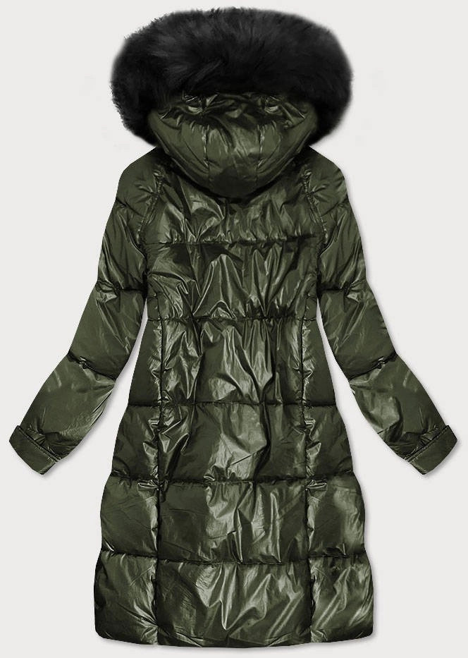 Dámská zimní metalická bunda v khaki barvě s kapucí (8295) odstíny zelené M (38)