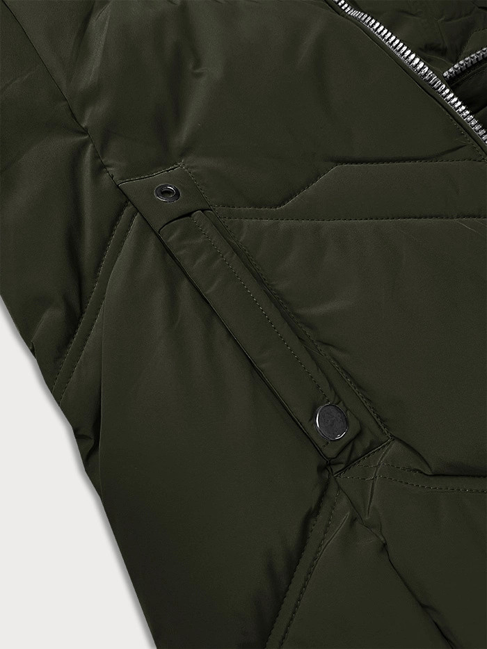 Domů Oblečení a móda Dámské oblečení Dámské bundy a kabáty Dámská zimní plus size bunda v khaki barvě s kapucí S'west (B8300-11) odstíny zelené 54