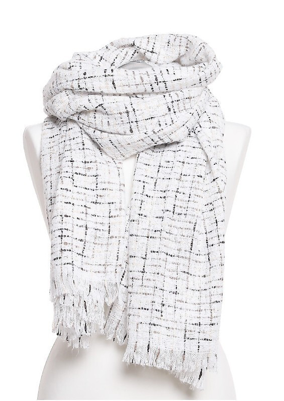 Velký dámský šátek - měkký, hřejivý úplet - kostkovaný vzor s lesklou stříbrnou nití - zakončený třásněmi - ideální na podzim a zimu - lze nosit na mnoho způsobů Složení: 100% polyester