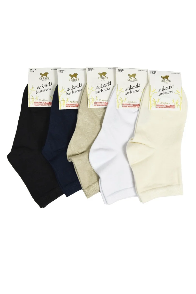 Odkryj wyjątkowy komfort i naturalną świeżość z damskimi skarpetkami zakostkowymi CERBER 1258 wykonanymi z celulozy bambusowej. Ich delikatna, oddychająca tkanina bambusowa zapewnia idealną cyrkulację powietrza, co czyni je doskonałym wyborem na każdą porę roku. Dzięki domieszce elastanu i poliamidu, skarpetki świetnie dopasowują się do stopy, nie uciskając i nie zsuwając się podczas noszenia. Są idealne do codziennego użytku – w pracy, podczas spacerów czy aktywności fizycznej. Dzięki właściwościom antybakteryjnym i higroskopijnym tkaniny bambusowej, Twoje stopy pozostają świeże i suche przez cały dzień.