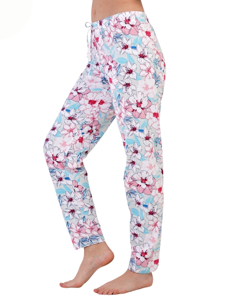 Módní květinové dámské bavlněné domácí či pyžamové kalhoty Vienetta Secret. Kalhoty mají v pase gumu se šňůrkou ke stažení. Materiál: 100% bavlna