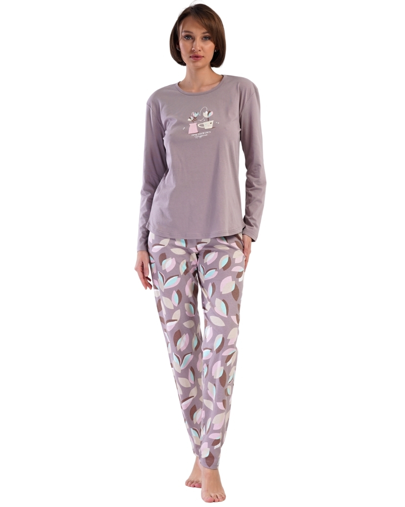 Dámské pyžamo s dlouhým rukávem Klárka. Kvalitní bavlněné dámské dlouhé pyžamo v decentním motivu. Materiál 100% bavlna
