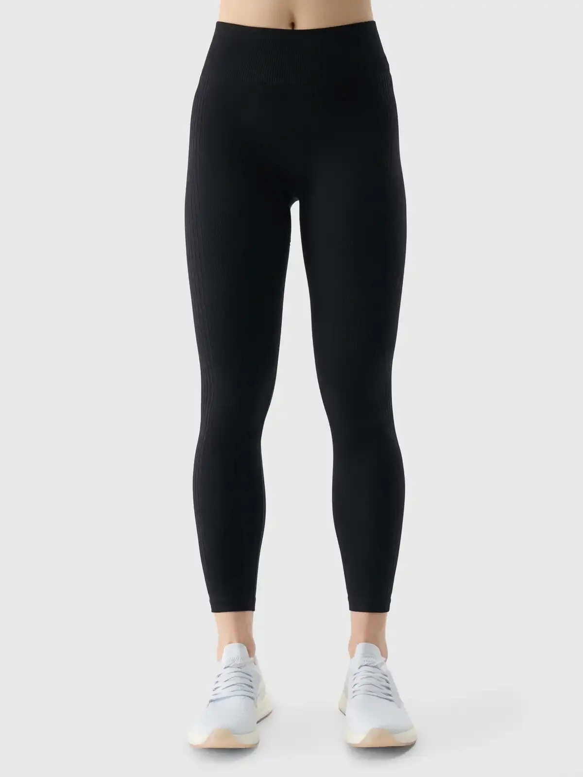 Díky rychleschnoucím, elastickým materiálům a pohodlnému střihu poskytují legíny plnou volnost pohybu a umožňují maximální soustředění a pohodlí během cvičení. Mají přizpůsobený střih slim, který přiléhá k tělu. Vazba na obou stranách interlock pleteniny je stejná. Materiál je odolný a zároveň měkký, dobře padne a absorbuje vlhkost. Mají vysoký pás, který zůstává na místě a zajišťuje lepší krytí a nohavice s plnou délku, které sahají po kotníky. Dámské sportovní legíny na fitness jsou vyrobeny ze syntetického materiálu, který zajišťuje odolnost a snadnou údržbu. Díky přídavku elastanu (8%) jsou elastické a pohodlně sedí na postavě. Dámské legíny 4F do posilovny s rychleschnoucími vlákny s technologií 4FDry, která podporují odvádění vlhkosti od těla. Dámské sportovní legíny 4F vyrobené v elastické, bezešvé konstrukci, která nezpůsobuje otlaky ani podráždění. Klasický střih bez kapes. Podél nohavic jsou umístěny ozdobné vzory. Elastický pás bez nastavení.