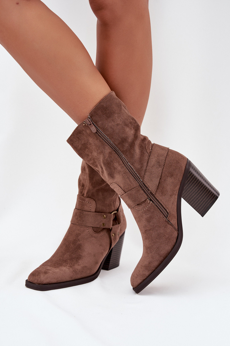 Domů Oblečení a móda Obuv Dámské boty Dámské boty zateplené na podpatku s pásky a ozdobným detailem hnědé Neria 39