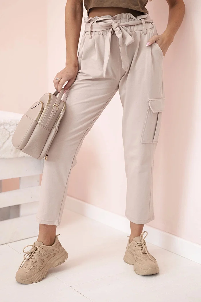 Dámské cargo kalhoty s vysokým pasem béžový UNI
