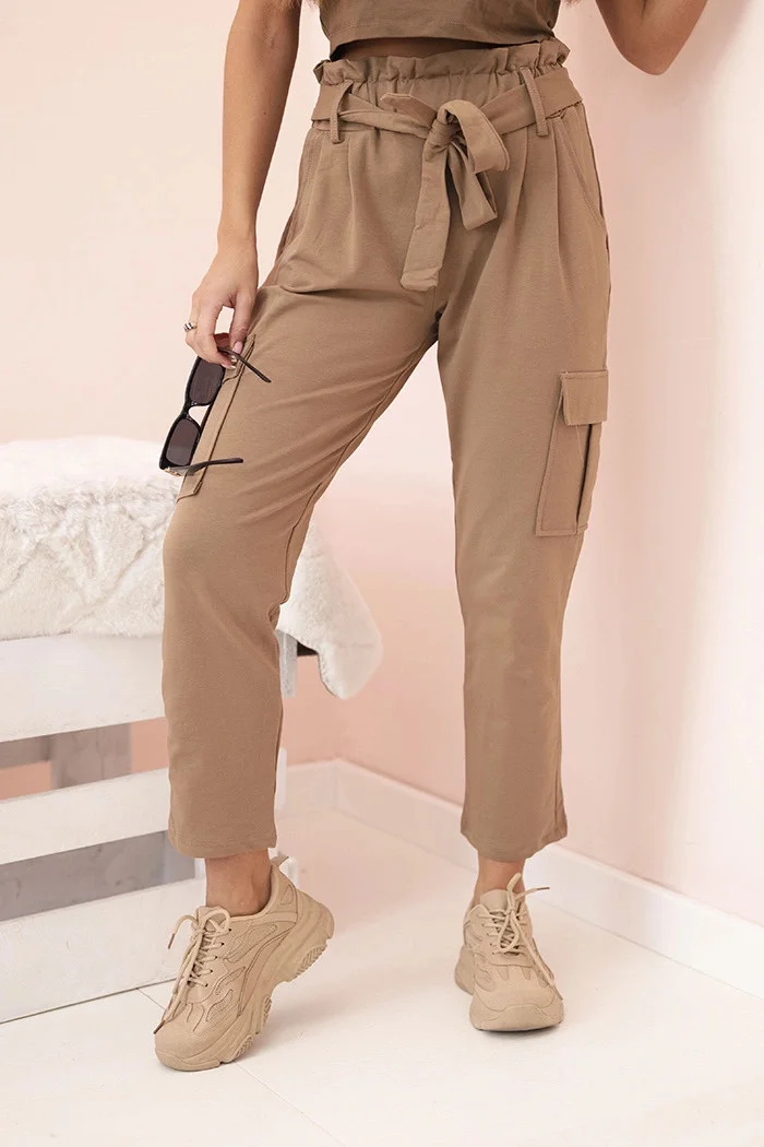 Dámské cargo kalhoty s vysokým pasem velbloud UNI