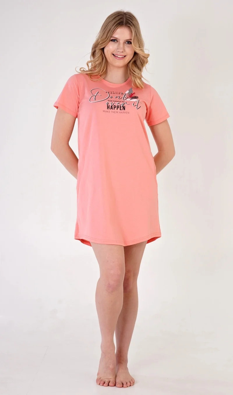 Dámské bavlněné domácí šaty s krátkým rukávem Lucie. Pohodlné jednobarevné domácí šaty s kulatým výstřihem jsou ozdobeny pestrým potiskem. Šaty mají praktické kapsy. Použitý bavlněný materiál je příjemný a poddajný na dotek. Domácí šaty jsou vhodné na spaní i na denní nošení. Pokyny pro údržbu: -70% bavlna, 30% polyester - lze prát v pračce při teplotě do 30° - nesušit v sušičce - žehlit z rubu do 110° - nepoužívat bělící prostředky - nečistit chemicky Míry naměřené na výrobku: 2120590000 Lucie M L XL XXL obvod hrudníku 98 100 104 108 obvod boky 108 116 120 124 délka 88 88 88 88
