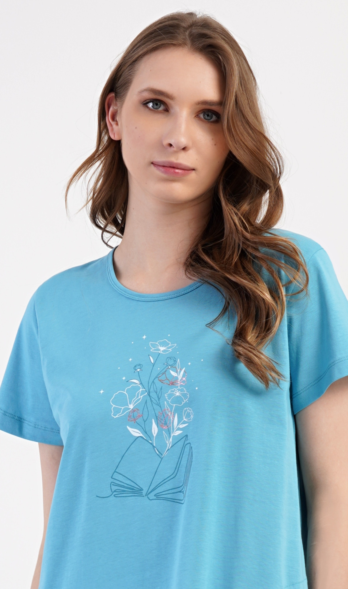 Dámské domácí šaty s krátkým rukávem Book petrolejová 4XL