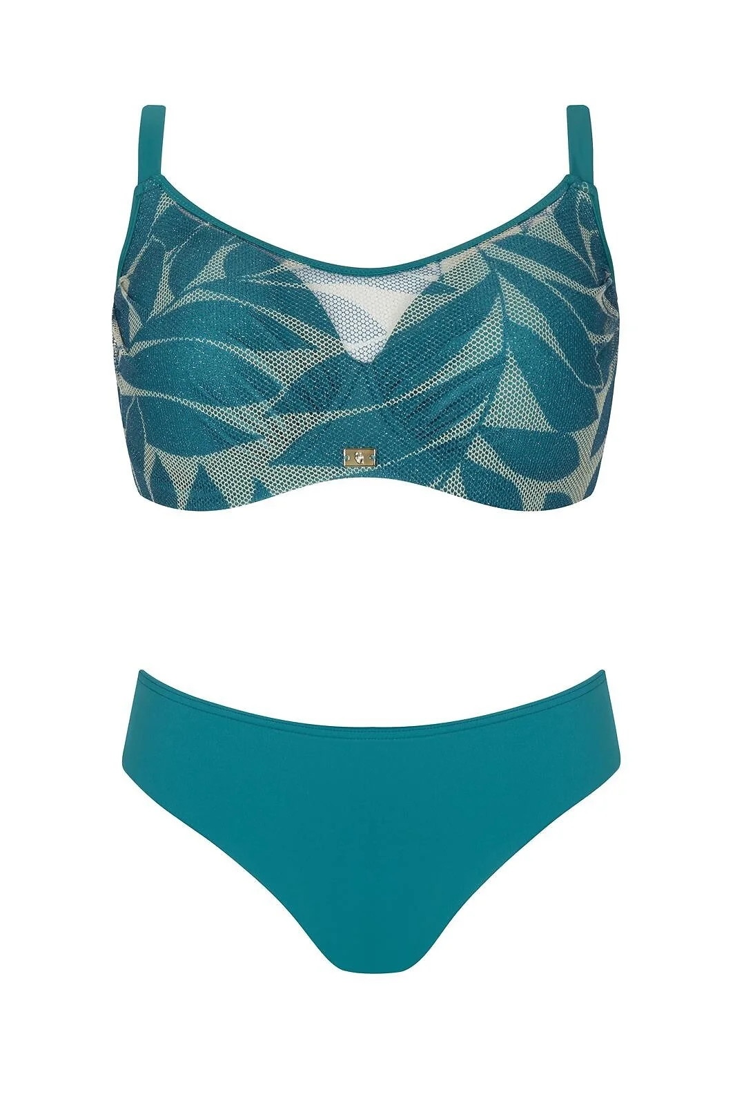 Dvoudílné plavky - polstrovaná mísa s kosticemi - push-up vložka ve vybraných velikostech 38C, 40C - nastavitelná, odnímatelná ramínka - nastavitelné zapínání na zádech - klasické kalhotky se skrytými švy - odolné vůči chlóru   Složení: 85 % polyamid, 15 % elastan
