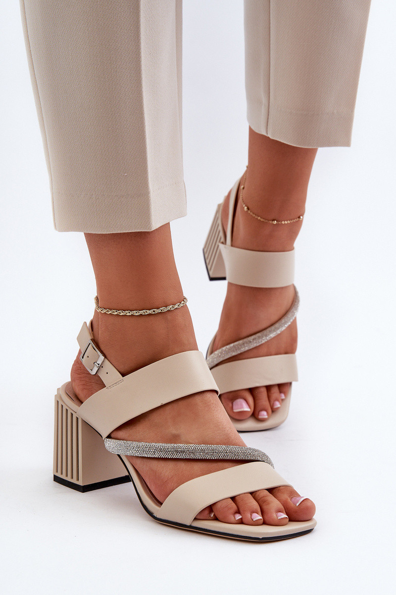 Kožené Sandály Na Vysokém Podpatku Béžová Lorisa 40