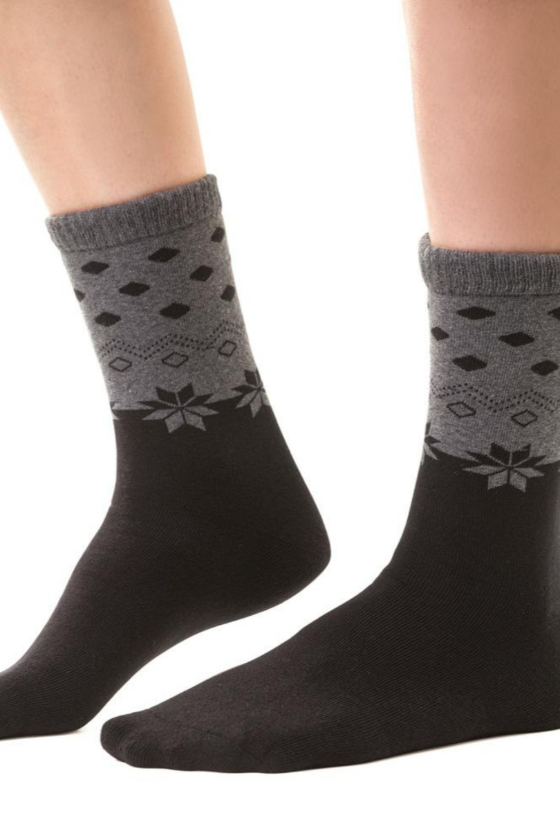 Dámské froté ponožky, které jsou vyrobené z velmi kvalitní bavlněné příze. Ponožky jsou ideální pro chladné dny. Složení: 84 % bavlna, 11 % polyamid, 2 % polypropylen, 2 % elastan, 1 % metalická příze.