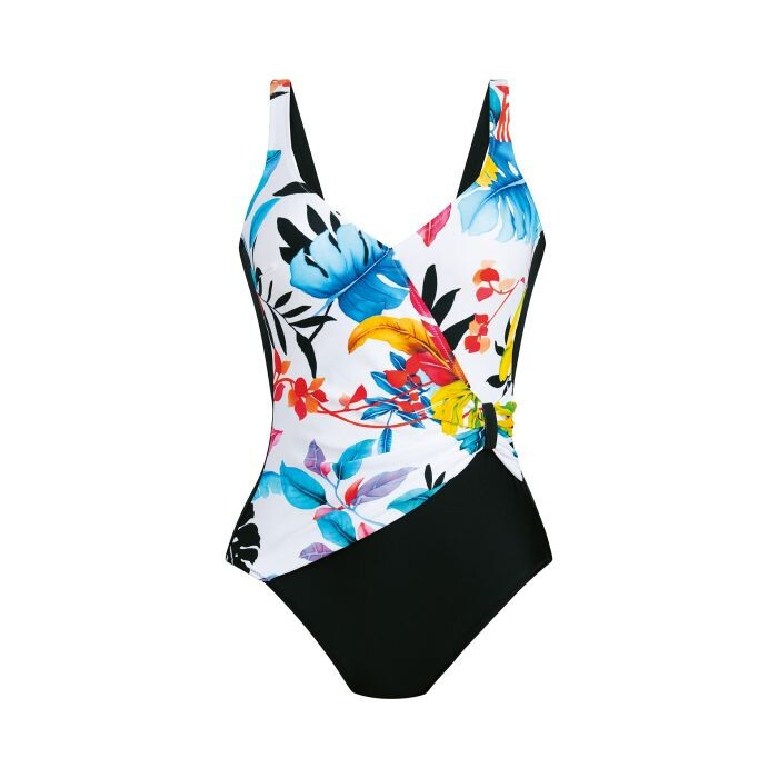 Plavky Elea vám přinesou tropy přímo domů! Bez kostic Tyto vyztužené plavky ze série "Green Tropics" vytvářejí zeštíhlující efekt díky asymetrickému bočnímu volánku, který je ozdobený kovovou sponou. S nastavitelnými ramínky, vestavěnými košíčky a elastickou funkční podšívkou nabízejí dokonalé pohodlí pro bezstarostné dny u jezera, bazénu nebo na pláži. Materiálové složení: 80% Polyamid, 20% Elastan