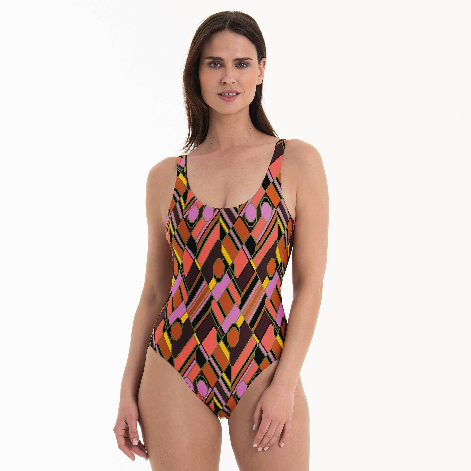 Dámské jednodílné plavky od značky Anita - materiál Micro Silk Ware - širší ramínka - ozdobný geometrický vzor Materiálové složení: 77% polyamid, 23% elastan