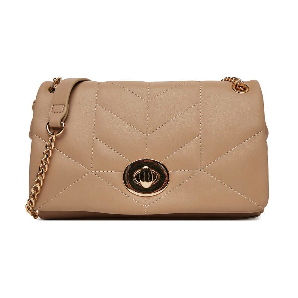 Módní dámská koženková kabelka na rameno Doris, krémová-hnědá