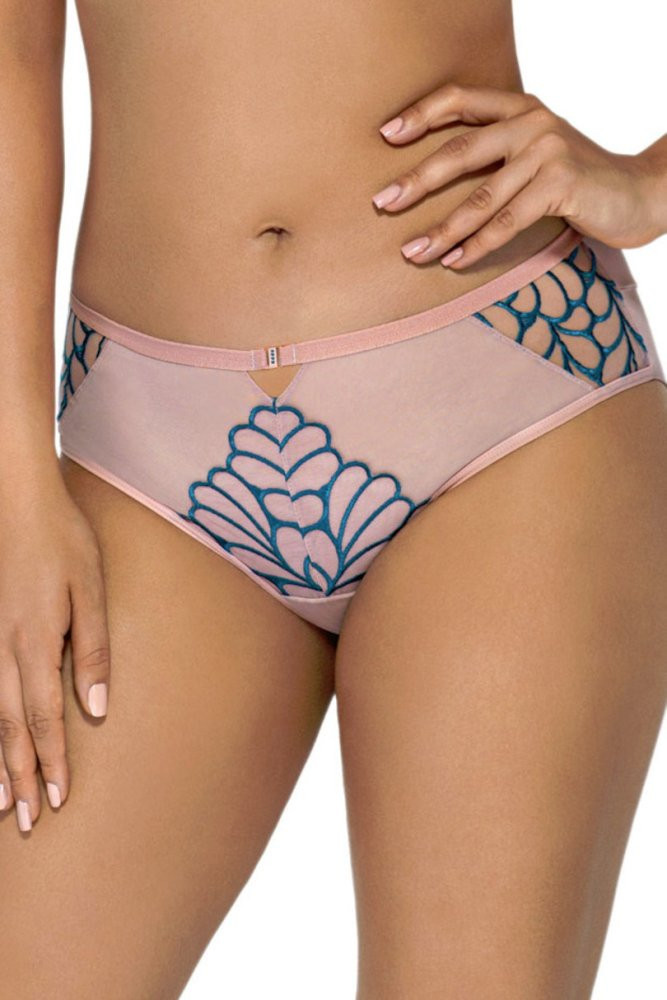 Dámské kalhotky - plný, vestavěný střih - přední strana zdobená výraznou výšivkou - opasek lemovaný gumou a zdobený sponou - záda z dvojitého tylu Složení: 91 % polyamid, 5 % bavlna, 4 % elastan