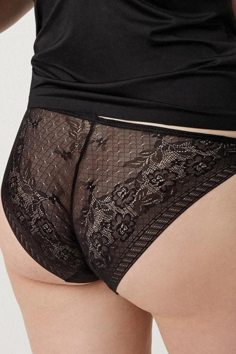 Dámské mini bikiny, vpředu hladké, vzadu jemná krajka. Složení: 90% polyamid, 10% elastan Krajka: 84% polyamid, 16% elastan Vložka: 100% bavlna .