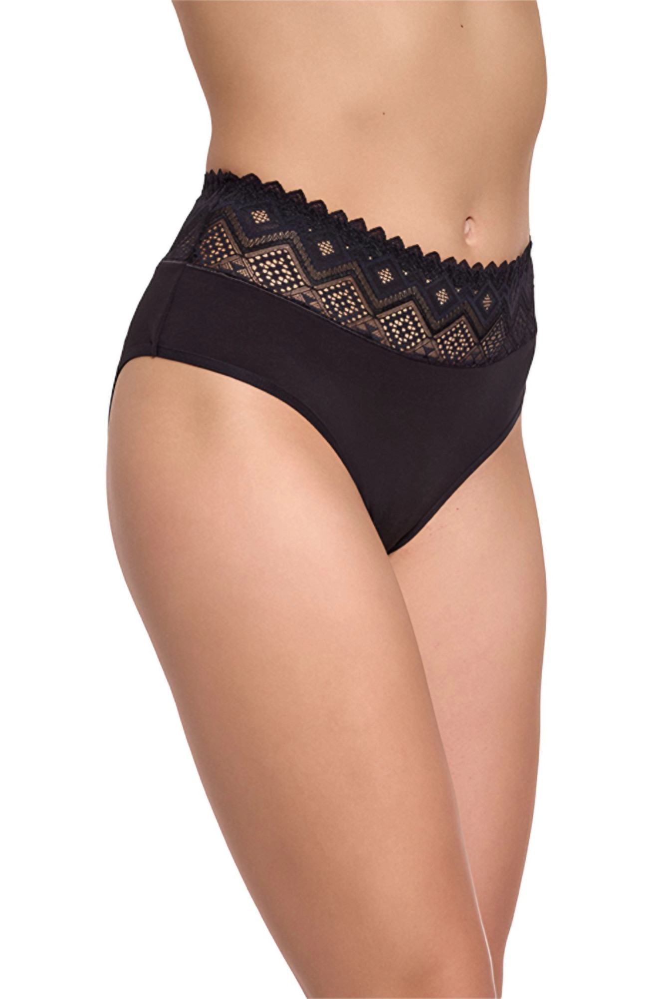 Dámské kalhotky 205 black GABIDAR - černá barva - z vysoce jakostní bavlny - vyšší střih - široká ažurová krajka v paseMateriálové složení: 95% bavlna + 5% elastan