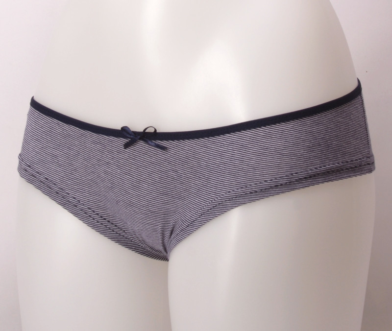 Dámské kalhotky Amélie. Dámské proužkované kalhotky s mašličkou a černým lemováním. Použitý materiál je jemný a poddajný na dotek.