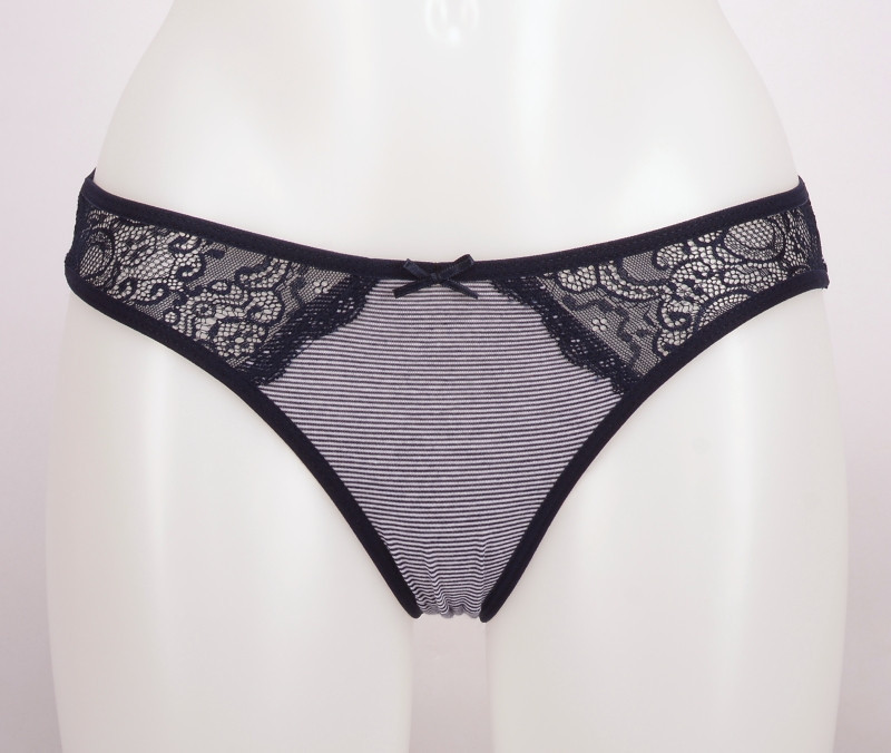 Dámské kalhotky Andy. Zajímavě řešené dámské kalhotky mají boky z krajky a porstřední část z pruhované látky. Použitý materiál je jemný a poddajný na dotek.