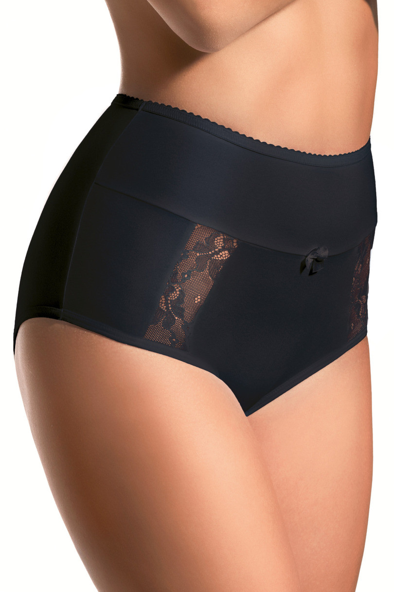 Vyšší dámské kalhotky typu midi, ušité z kvalitní bavlny s přídavkem lycry. Přední strana je ozdobená mašličkou a kPunčochové kalhotyovými všivkami. 92% bavlna, 8% elastan lycra.