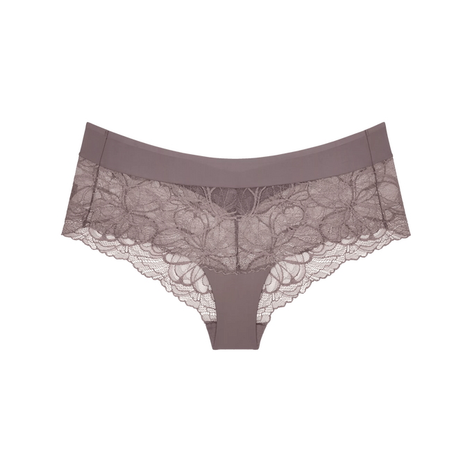 Šortky zvýšeného střihu s bezešvou technologií a hladkým elastickým pasem pro pocit druhé kůže. Spodní díl z jemné krajky a krémově hebkého mikrovlákna, částečně recyklovaného. Maximálně krycí šortky typu slipy s moderním zadním dílem. Díky úpravě HeiQ Smart Temp na mikrovlákně zůstává pokožka chladná a příjemná-. Hladký a neviditelný pas a speciální švy zabraňují sklouzávání. Kombinace hladké krajky a a sametově hebkého mikrovlákna. Složení: Složení: 80% polyamid, 20% elastan