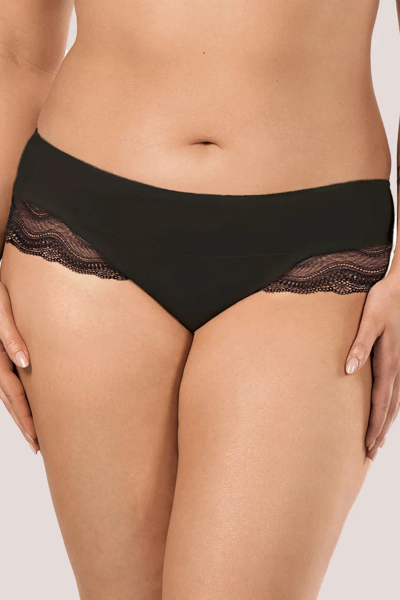 Zmysłowe brazyliany Pepite Czarny od marki Mefemi by Nipplex to połączenie elegancji i wygody w jednym. Ich niski krój doskonale podkreśla kształt bioder, a delikatne koronkowe wstawki dodają bieliźnie wyjątkowego charakteru. Wykonane z wysokiej jakości materiałów, zapewniają komfort noszenia przez cały dzień. Bielizna wykonana z poliamidu (75%), poliesteru (16%), elastanu (7%) oraz bawełny (10%) jest nie tylko trwała, ale również przyjemna w dotyku. Czerń dodaje elegancji i pasuje do każdej stylizacji bieliźnianej. Postaw na subtelny urok i wyrafinowany styl z brazylianami