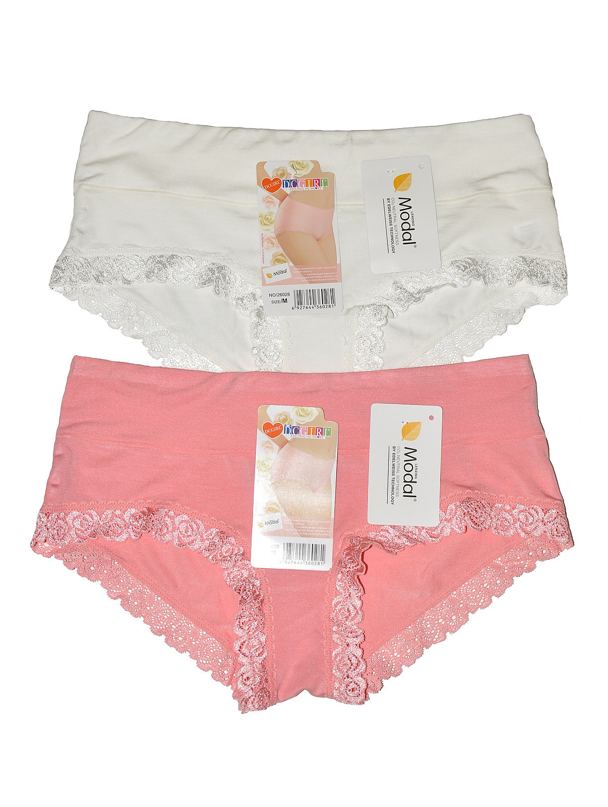 Dámské kalhotky, pevné - nahromaděné na bocích - pás zakončený širokým lemem - hezké a příjemné na dotek - baleno v plastovém sáčku po dvou v těchto barvách: ecru-černá, modrá-ecru, béžová-modrá Složení: 94 % modal, 6 % elastan