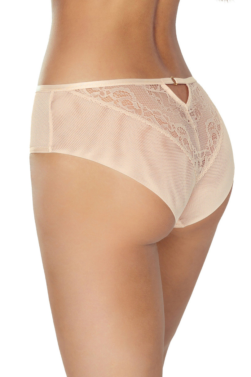 Výjimečně elegantní a pohodlné dámské spodní prádlo. V pase jsou pružné a měkké gumičky, které zajišťují dokonalé přizpůsobení. Hýžďová linie je vyrobena z dvojité vrstvy úpletu beze švů a gumiček. Maskovací síťovina na vnější přední straně zabraňuje prosvítání krajky. Pohodlí zvyšuje 100% bavlněná podšívka v rozkroku. Spodní díly jsou jednotlivě zabalené v elegantní krabičce. Složení: 75% polyamid, 25% elastan     .