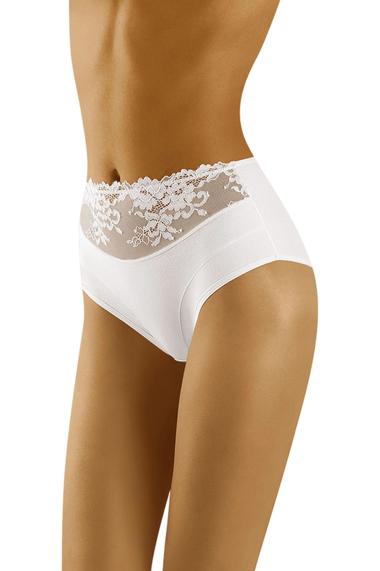Dámské kalhotky Eco-HI Wol-bar - bílá barva - z vysoce jakostní bavlny - vyšší pas - pas zdobený krajskou s květinovým motivem - zadní část je hladkáMateriálové složení: 90% bavlna + 7% elastan + 3% polyamid
