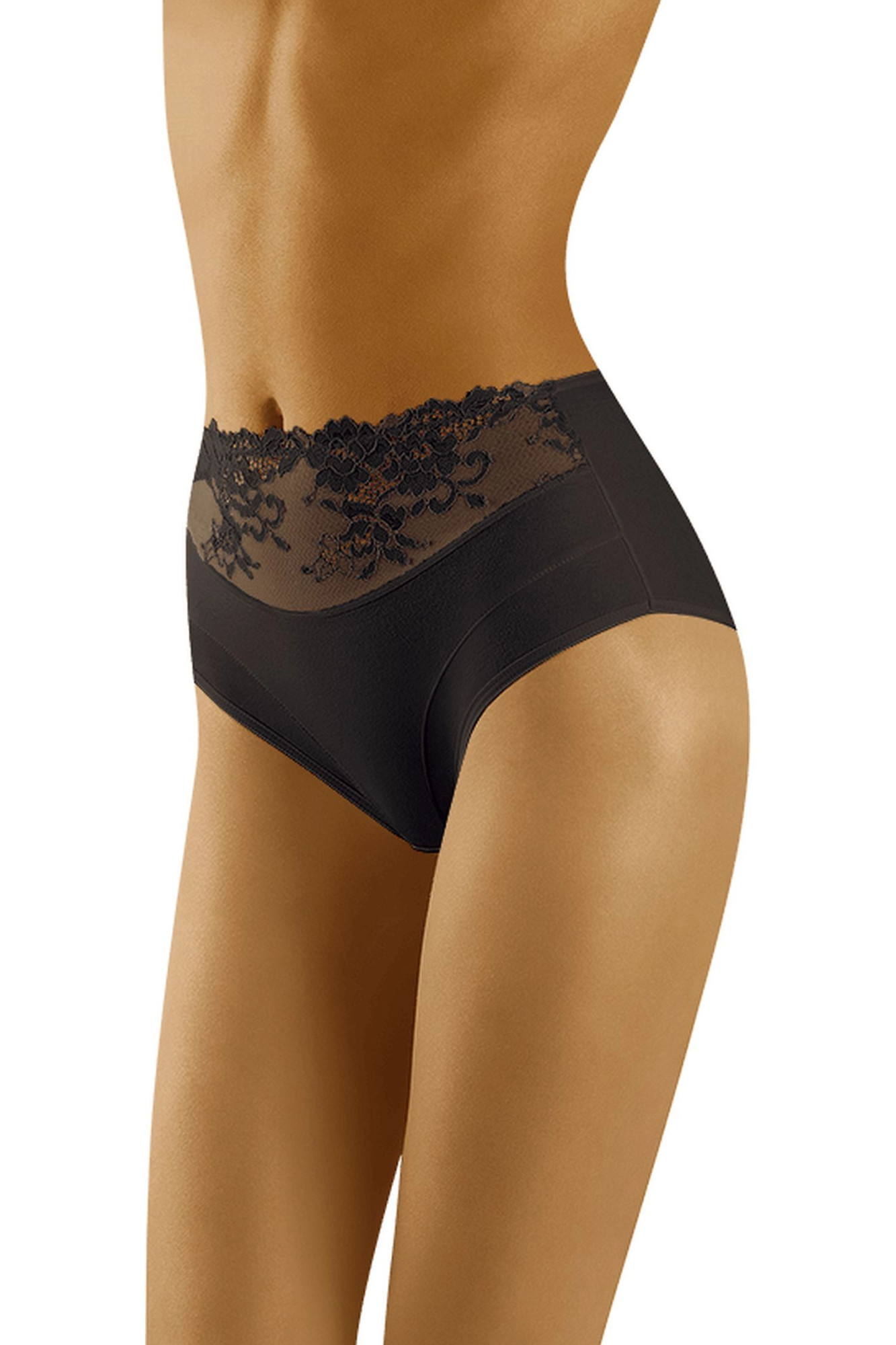 Dámské kalhotky Eco-HI Wol-bar - černá barva - z vysoce jakostní bavlny - vyšší pas - pas zdobený krajskou s květinovým motivem - zadní část je hladkáMateriálové složení: 90% bavlna + 7% elastan + 3% polyamid